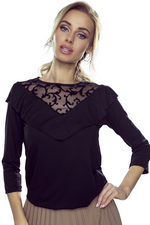 Bluzka z rękawem 3/4 dekolt z siateczką Orlanda Eldar czarna